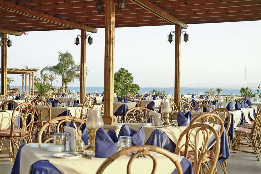 Großzügige Raumverhältnisse prägen die gesamte Anlage. Das zentrale Hauptgebäude umfasst Reception und Lounge, das Hauptrestaurant «The Seven Seas» mit täglich wechselnden Buffets, das A-la-carte-Restaurant «Berenice» mit italienischen Spezialitäten, Lobbybar, Raum für Yoga und Pilates, Spa, Souvenirshops sowie die Tauchbasis. Das Herzstück ist die Piazza mit einer riesigen Poollandschaft, integrierter Poolbar und dem Fitnesscenter «Sea-Breeze» mit Sicht auf das Meer. Beduinenzelt, Beachbar und professionelle «Surf & Action»-Windsurfstation am Strand mit aktuellem Material. Kostenloses Wi-Fi ausschließlich bei der Rezeption.