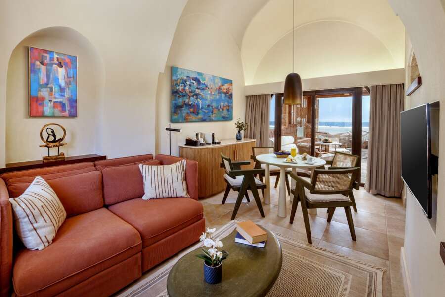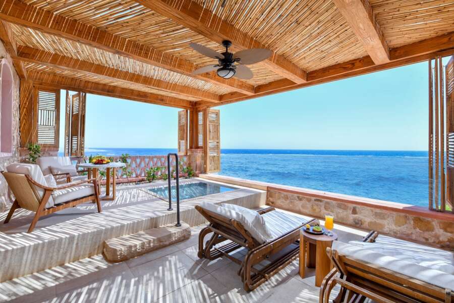 Die luxuriösen Junior Suiten sind mit einem Queensize-Bett ausgestattet und verfügen über eine große Terrasse mit komfortablem Außenbereich, direkte Meersicht und einen kleinen Plunge Pool. Die Nubian Suiten verfügen im Badezimmer über eine zusätzliche Badewanne und eine bequeme Hängematte auf der Terrasse.