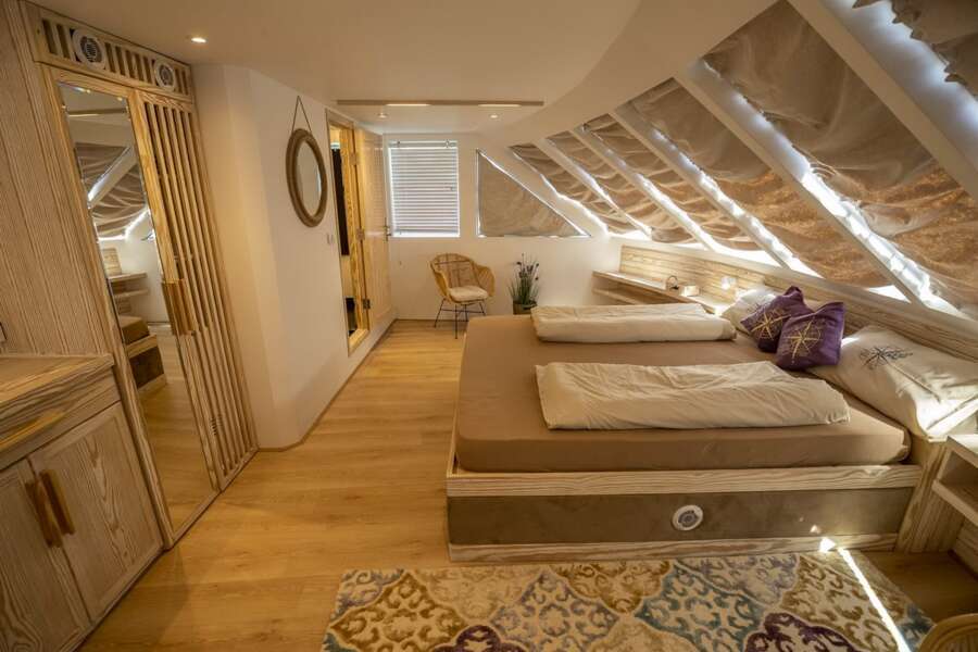 Die «Soul of Omneia» bietet Platz für insgesamt 29 Gäste in 15 großzügigen und geschmackvoll eingerichteten Kabinen. Alle verfügen über Klimaanlage, Dusche/WC, Kühlschrank, Haartrockner, Handtücher, Sonnenhandtücher und Bademäntel. Im Unterdeck befinden sich 5 Zweibettkabinen, sowie 1 Suite mit Doppelbett. Weitere 5 Zweibettkabinen, 2 Suiten mit Doppelbetten und eine Einzelkabine liegen auf dem Hauptdeck. Die Master Suite liegt auf dem Sonnendeck.