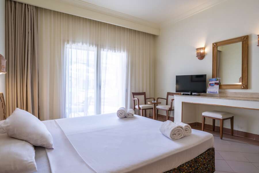 30 Superior-Zimmer mit Poolblick und Terrasse verfügen über Telefon, Safe, Wasserkocher, Sat.-TV, Klimaanlage, Kühlschrank und Bad/WC. 5 Einheiten sind barrierefrei zugänglich.