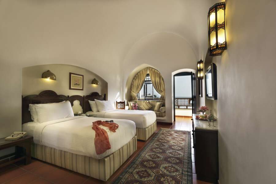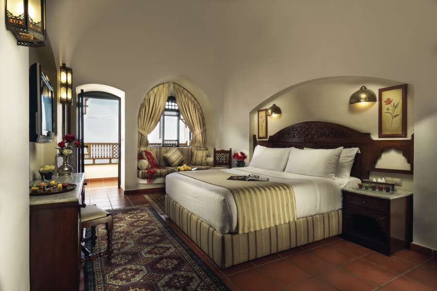 Die Anlage hat 298 komfortable Zimmer und Suiten im arabischen Stil mit Meerblick. Alle Zimmer haben einen privaten Balkon und sind mit dunklen Möbel ausgestattet. Sie verfügen über Dusche/WC, Haartrockner, Telefon, Sat.-TV, Minibar, Zimmersafe und Klimaanlage.