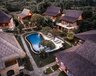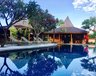 Das Herz der Anlage bildet der 16m lange Swimmingpool mit gemütlichen Liegestühlen, umgeben von tropischen Pflanzen. Die Gästezimmer sind in rundherum gelegenen Holzhäusern im traditionellen javanischen Stil untergebracht.
