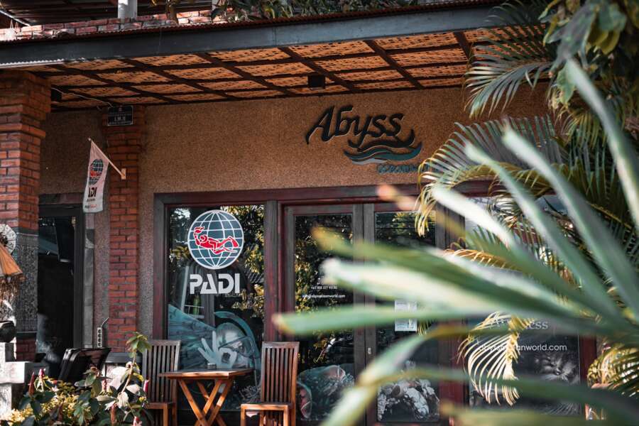 Die Tauchbasis Abyss Ocean World liegt ungefähr 10 Gehminuten vom «Sun Suko Boutique Retreat» entfernt. Die professionellen Tauchlehrerinnen und Guides bieten Tauchkurse nach PADI an und führen Taucher und Schnorchler in die farbenfrohe Unterwasserwelt Menjangans und Pemuterans.