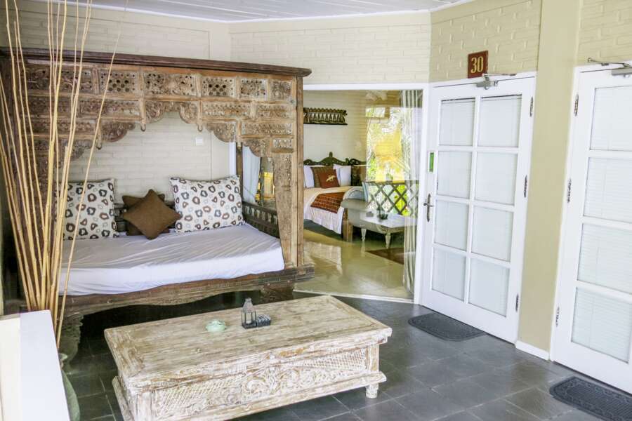 Den Gästen stehen 2 Sea View Bungalows, 23 Sea View Deluxe Zimmer, 1 Sea View Liberty Suite sowie 2 Sea View Family Suiten zur Verfügung.