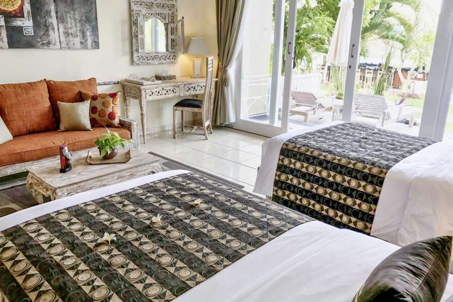 Die Sea View Deluxe Zimmer sind 40 m² groß und liegen im Erdgeschoss oder im ersten Stock.