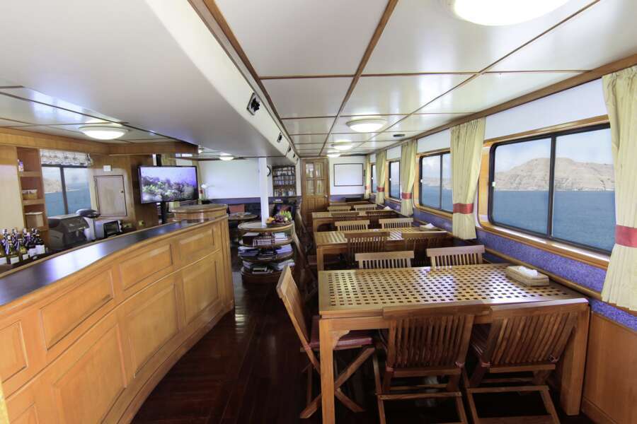 Im Restaurant auf dem Hauptdeck werden schmackhafte Mahlzeiten aus thailändischer, indonesischer und westlicher Küche serviert. Im Salon stehen TV/DVD, Musikanlage und eine Leseecke zur Verfügung. Sonnendeck auf dem Oberdeck sowie Briefing-Deck auf dem Hauptdeck.