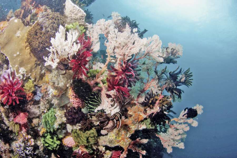Tauchrevier Die 15 Tauchplätze sind alle in 10–90 Minuten erreichbar. Der nördliche Teil des Nationalparks begeistert die Makro-Fans und Korallenliebhaber mit flach abfallenden Riffen in allen Farben und Formationen. Im Süden herrscht mehr Strömung und dementsprechend ergeben sich große Chancen auf Großfische wie Mantas und Haie.