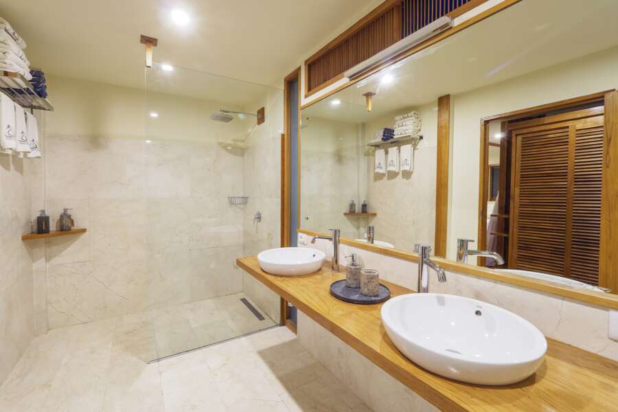 Die großzügigen Grand View (40 m²) und Grand Beach Zimmer (40 m²) bieten nicht nur viel Platz, sondern verfügen auch über eine gemütliche Sofaecke. Diese Sofas können bei Bedarf in zusätzliche Betten umgewandelt werden. Die Grand Beach Zimmer befinden sich im Erdgeschoss direkt am Strand, während die Grand View Zimmer im ersten Stock der Bungalows liegen und einen erhöhten Ausblick bieten.