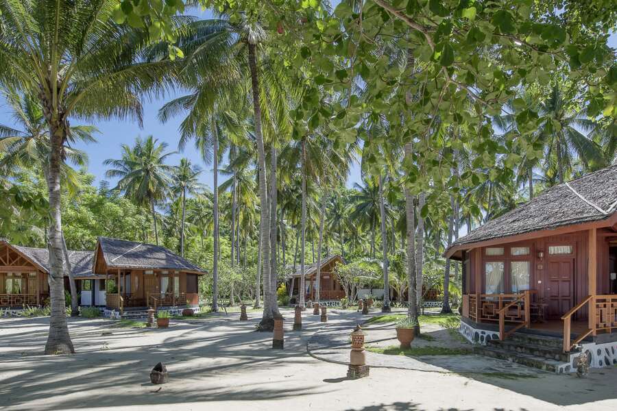 Unter den Schatten spendenden Palmen liegen 30 Bungalows, gefertigt aus lokalen Materialien.