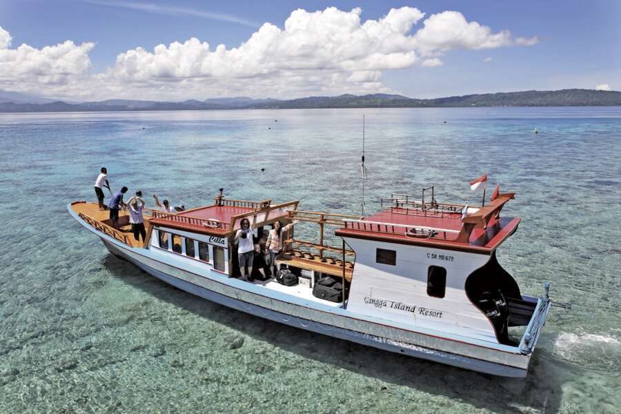 Ein Auto bringt die Gäste in 70 Minuten vom Flughafen Manado an die Nordküste, wo sie das Transferboot bereits erwartet. Die Überfahrt ins Resort auf Gangga Island dauert etwa 20 Minuten.