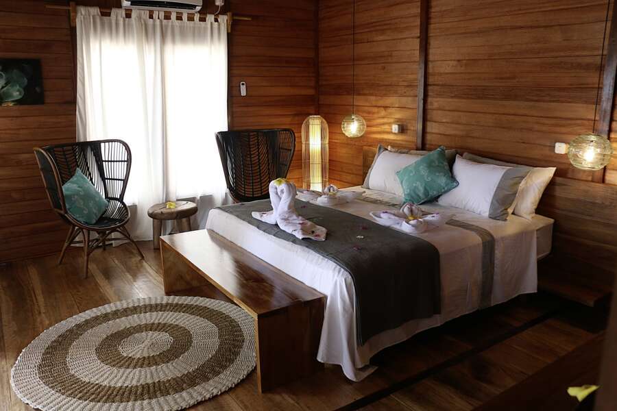 Die 2 alleinstehenden Beach Villas (54 m²) bieten maximale Privatsphäre und liegen am Ende des Grundstücks direkt am Strand. Die Villas haben ebenfalls eine raumhohe Fensterfront zum Meer und bieten genug Platz für ein zusätzliches Bett.