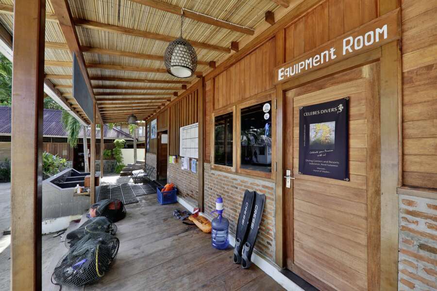Infrastruktur Die topmoderne Tauchbasis ist mit einem großen Trockenraum mit einzelnen Kabinen für die eigene Tauchausrüstung, 3 Spülbecken und einem klimatisierten Kameraraum ausgestattet. Im oberen Stock befindet sich ein Open Air Schulungsraum für Seminare und Tauchkurse. Die Flotte besteht aus 2 traditionellen Holzbooten und einem Glasfaser-Schnellboot.