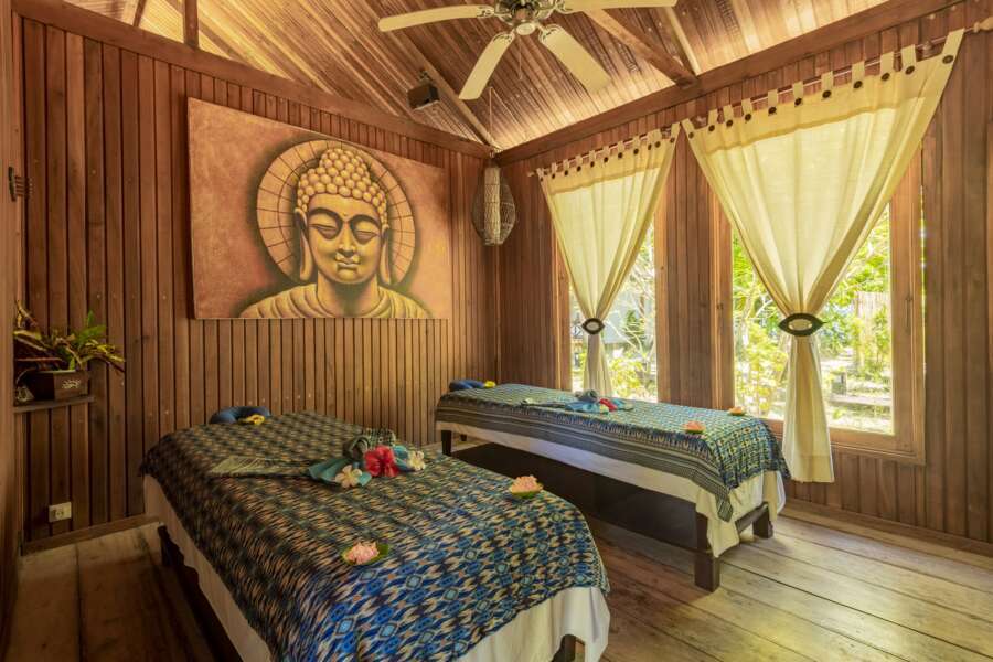 Das Spa offeriert Aromatherapie sowie Behandlungen indonesischer und thailändischer Herkunft, Gesicht- und Ayurvedabehandlungen, Körperreinigung und natürliche Peelings.