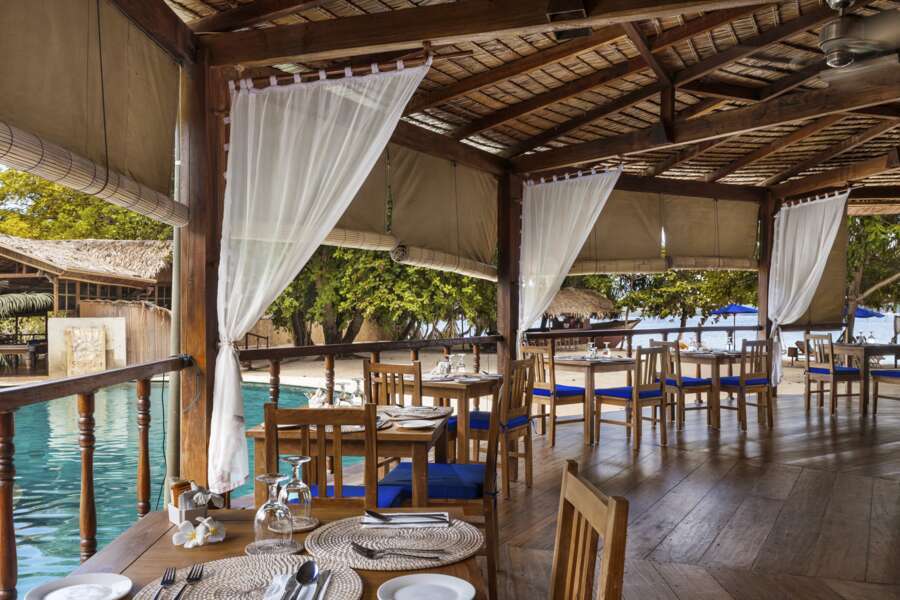Das abgelegene und ruhige Resort bietet ein hohes Maß an Komfort. Im Gourmetrestaurant wird indonesische und asiatische Küche geschickt mit europäischen Rezepten kombiniert. Zudem ist eine breite Auswahl an internationalen Weinen im Angebot. Weiter finden die Gäste eine Lounge-Bar am Strand, ein traditionelles Spa, eine kleine Boutique und einen Souvenirshop vor. Natürlich darf auch ein Salzwasserpool mit Meerblick nicht fehlen. Wi-Fi ist kostenlos verfügbar.