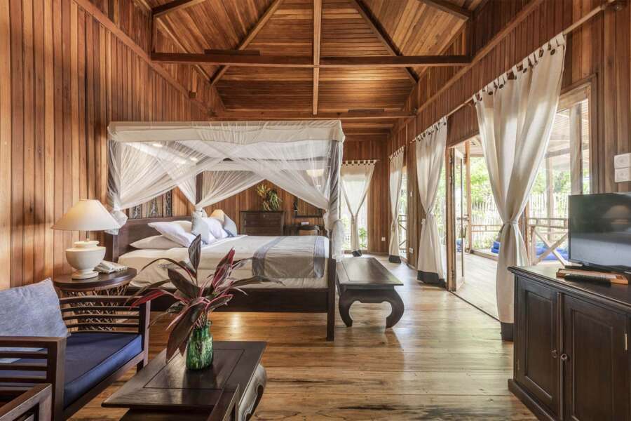 Das stilvolle Resort unter europäischem Management zählt zweifellos zu den besten auf Nordsulawesi. Es befindet sich in einer üppig bewachsenen, traumhaften Kulisse auf der Insel Siladen, im Herzen des Bunaken-Nationalparks. Somit sind die Bootsfahrten zu Tauchplätzen mit schwindelerregenden Steilwänden und grandiosem Korallenbewuchs nur von kurzer Dauer. Das eigene Spa bietet eine breite Palette an Massagen und Bädern, und auch die Atmosphäre am Pool oder am weißen Sandstrand ist mehr als entspannend.