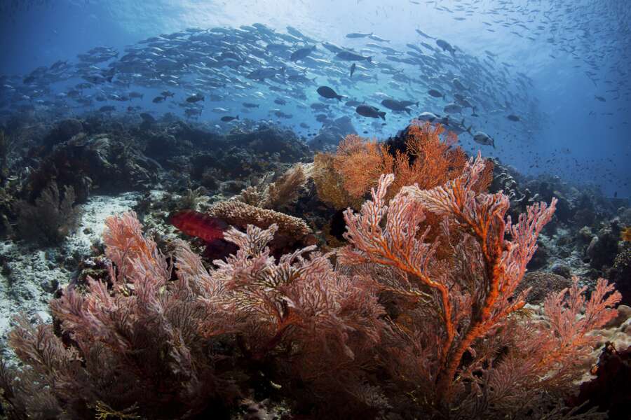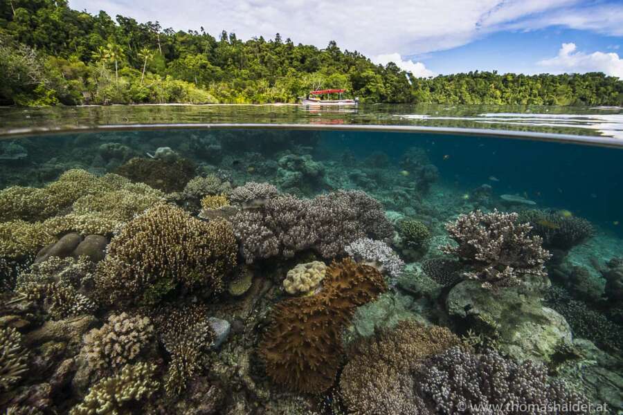 Die Gewässer blieben bis heute von Korallenbleiche wie auch vor massiver Befischung verschont. Raja Ampat’s Unterwasserwelt beherbergt nicht nur einige der wohl schönsten und dichtesten Korallenriffe der Welt, auch die Vielfältigkeit der Flora und Fauna ist kaum erreicht. Ein australischer Biologe zählte während eines einzigen Tauchgangs vor Kri Island über 280 Fischarten! Der gesunde Fischbestand ist mit enormen Schwärmen von Makrelen, Schnappern, Barrakudas, Füsilieren, Süßlippen- und Fledermausfischen stets präsent. Um die Insel Kri taucht man häufig mit Großfischen wie Mantas, Mobulas, Wobbegongs oder Riffhaien, und natürlich ist auch die gesamte Palette an Makroraritäten anzutreffen. Fünf Arten von PygmäenSeepferdchen, unzählige Nacktschnecken, Oktopusse und viele Skorpionfischarten und andere «Critters» sind sowohl am Riff als auch bei typischen «Muck Dives» anzutreffen. Die Tauchgründe um Misool sind in ihrer Pracht nicht weniger spektakulär. Vielleicht ist die dichte an Fischschwärmen und größeren Fischen nicht ganz so hoch wie bei Kri. Dadurch findet man jedoch etwas mehr Raum, den Umfang der Makrowelt und der Korallenpracht zu wahrzunehmen, welche gar noch ausgeprägter sein mag als weiter nördlich. Raja Ampat genießt zu Recht einen enorm hohen Stellenwert in der Meeresbiologie und bei Naturschutzorganisationen. Die Elite der professionellen Unterwasserfotografie schwärmt in den höchsten Tönen über die Tauchgründe und kaum ein Gast kann diese Begeisterung nicht mit ihnen teilen. Große Teile des Archipels stehen heute unter Naturschutz. Dies nährt die Hoffnung, dass die Tauchgründe Raja Ampats noch viele Jahre so ursprünglich und intakt bleiben werden.