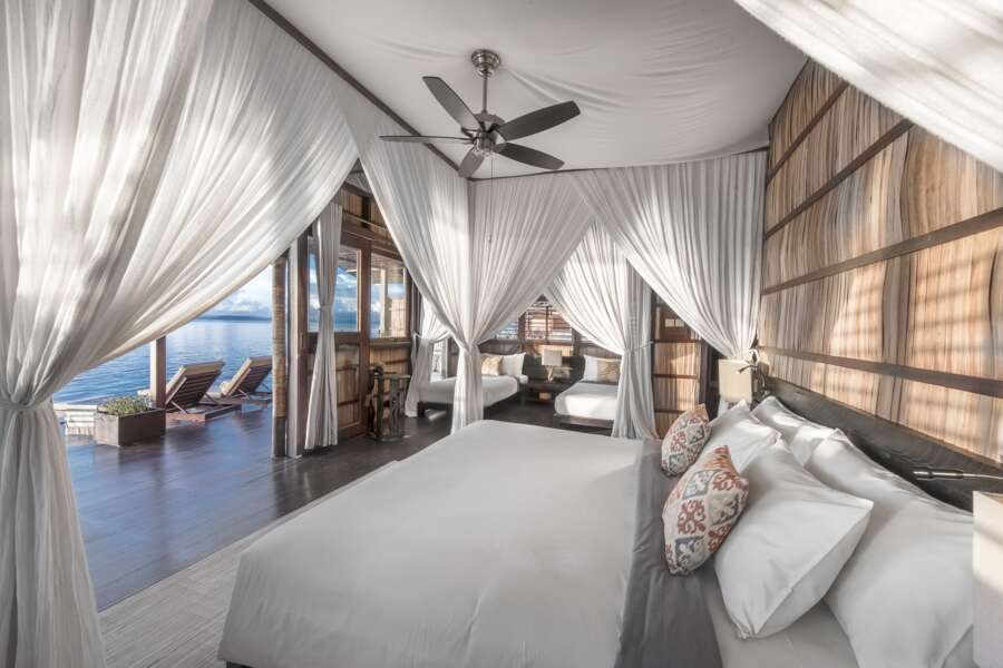 16 Superior Over Water Bungalows (70m²) sind auf Stelzen erbaut und ermöglichen einen unvergesslichen Blick aufs Meer und das Riff.