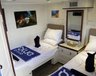 8 Classic-Kabinen mit Einzelbetten auf dem Unterdeck, 1 Classic-Kabine mit Doppelbett und 2 Premium Kabinen mit Doppelbett auf dem Hauptdeck und 2 Premium Kabinen mit Einzelbetten auf dem Oberdeck. Alle Kabinen mit Dusche, WC, Klimaanlage.