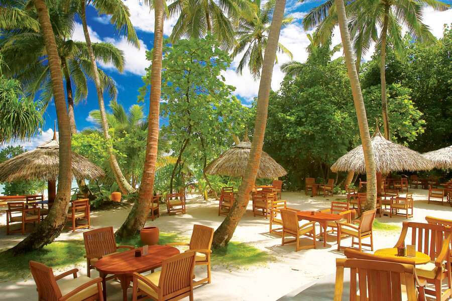 Hauptrestaurant mit abwechslungsreicher und internationaler Küche, A-la-carte-Restaurant «Sunset» mit Poolbar und großer Auswahl an Snacks und Getränken, die «Filitheyo»-Bar bietet Erfrischungsgetränke im Schatten von Palmen. Beach Dinner und Barbecues auf Anfrage. Souvenirshop, Swimmingpool, gelegentliche Abendunterhaltung, kleine Bibliothek, Wäscheservice, Wi-Fi gegen Gebühr und ein Spa das Gästen exquisite Massagen und Behandlungen bietet.