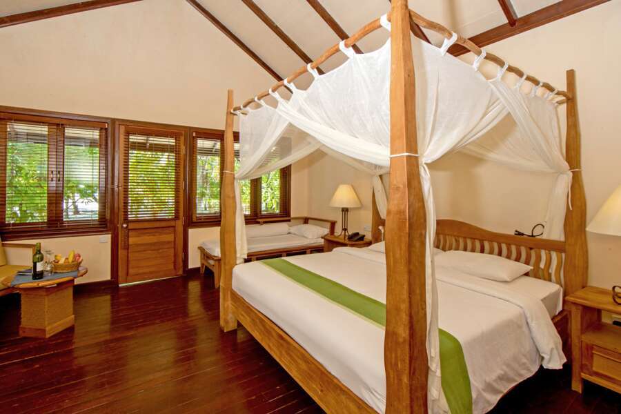 Alle 118 Villas sind aus Holz gebaut und wurden perfekt in die tropische Insellandschaft integriert. Sie verfügen über Klimaanlage, Deckenventilator, Minibar, Telefon, Safe, TV, Badezimmer mit Dusche, Haartrockner sowie Tee-/Kaffeekocher.