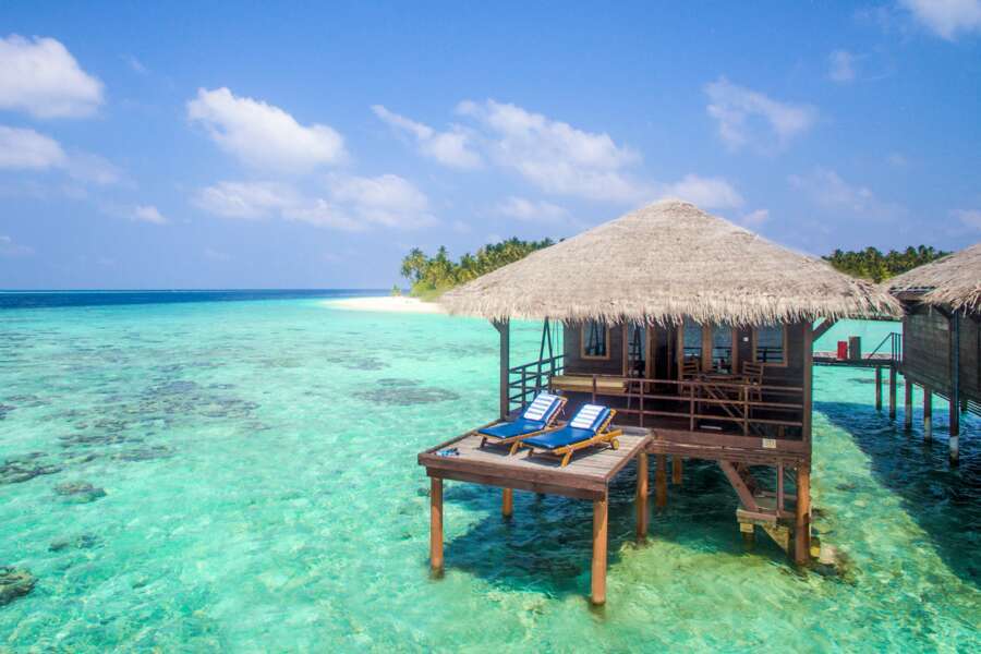 Die 16 Water Villas (90 m²) sind auf Stelzen in die Lagune gebaut und sind mit einem Whirlpool im Badezimmer, einer maledivischen Schaukel sowie direktem Zugang zum Meer ausgestattet.