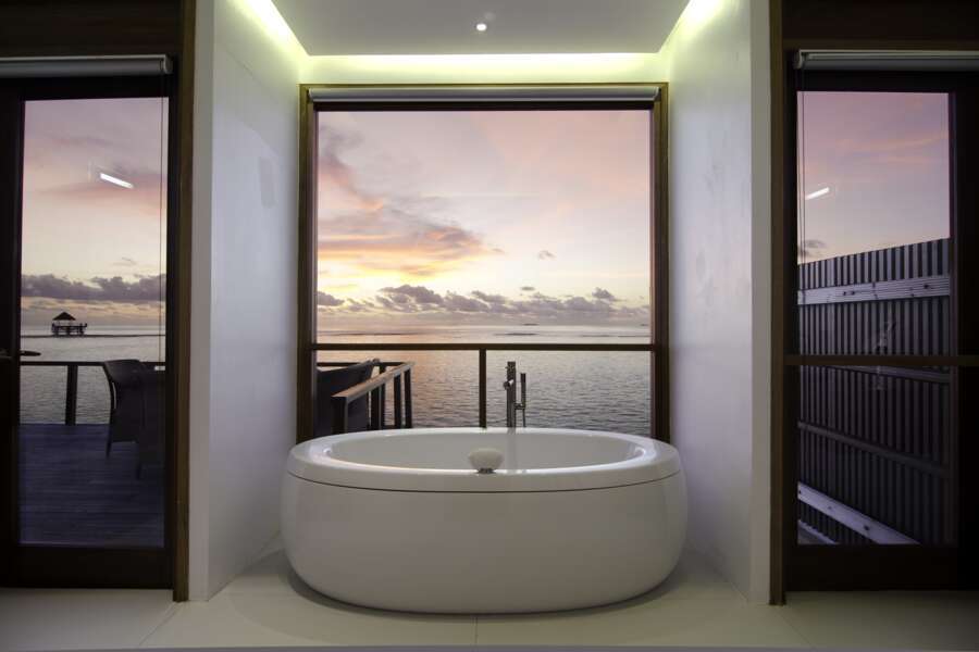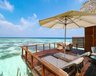 Die 4 Ocean Villas (80 m²) sind auf Stelzen über Wasser gebaut und durch einen Steg mit der Insel verbunden. Die Sonnenterrasse bietet eine traumhafte Sicht über den Indischen Ozean mit direktem Zugang ins Meer. Das geschlossene Badezimmer ist mit einer Whirlpool-Badewanne ausgestattet.