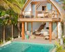 Die 8 Duplex Pool Villas (150 m²) sind zweistöckig und mit einem großzügigen Wohnbereich im unteren Stock, Open-Air-Badezimmer sowie einem Schlafzimmer mit 2. Badezimmer im oberen Stock ausgestattet. Zusätzlich verfügen die Zimmer über einen Pool (18 m²) auf der Terrasse.