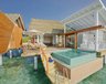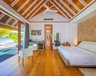 Die 7 Ocean Pool Villas (90 m²) sind ebenfalls auf Stelzen über Wasser gebaut und liegen auf der Sonnenuntergangsseite der Insel. Nebst dem großzügigen Schlafzimmer verfügen diese Villen über ein geschlossenes Badezimmer mit Dusche und Badewanne sowie ein großes Sonnendeck mit privatem Pool (7 m²).