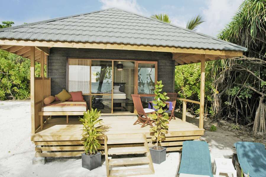 Die 33 Beach Villas (57 m²) sind ganz aus Holz gebaut und haben eine gedeckte Terrasse.