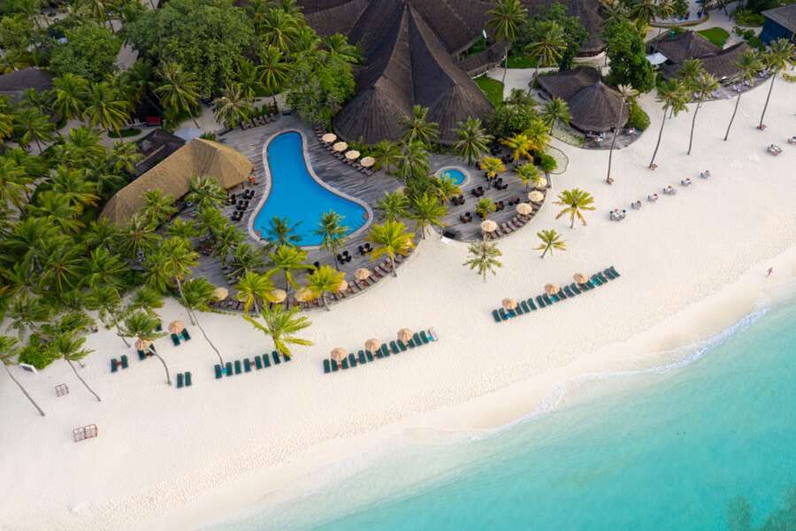 Per Wasserflugzeug in etwa 40 Minuten oder per Inlandflug nach Madivaru in etwa 35 Minuten sowie weiteren 15 Minuten Boottransfer vom 152 Kilometer entfernten Flughafen.
