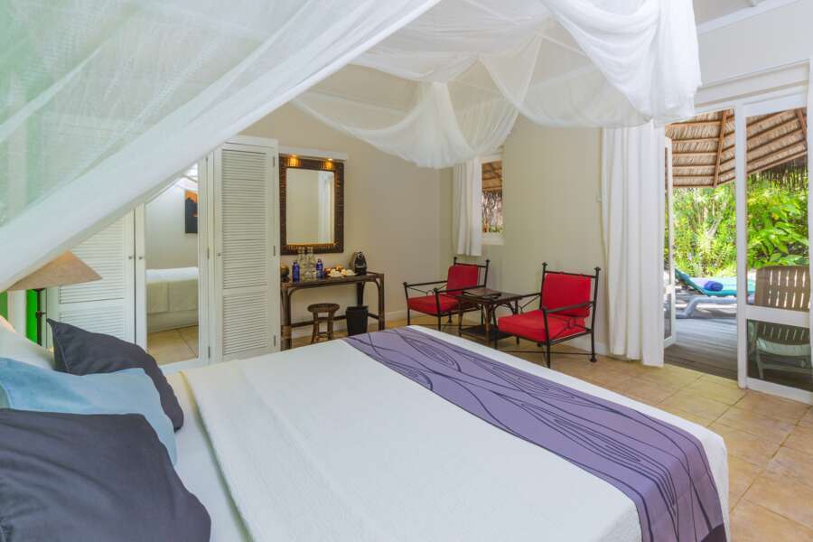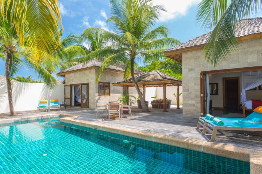 Die 8 Private Pool Villas (287 m²) liegen im Inselinnern und bieten viel Privatsphäre. Sie verfügen über einen grossen Garten mit Pool (40 m²) sowie einen Liegeplatz am Strand. Weiter gibt es eine grosszügige Deluxe Beach Villa (72 m²) mit offenem Badezimmer auf der Nordseite der Insel, eine 2-bedroom Beach Villa (91 m²) mit 2 Schlaf- und 2 geschlossenen Badezimmern und eine Private Pool Villa Family Suite (313 m²) mit gleicher Ausstattung und Lage wie die Private Pool Villas sowie 2 Schlafzimmern.