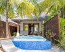 Die 36 einzelstehenden Deluxe Water Villas (126 m²) sind alle in die Lagune gebaut und durch einen Steg mit der Insel verbunden. Sie bieten mehr Privatsphäre und Wohnfläche und verfügen zusätzlich über einen Plunge Pool (7 m²) auf der Sonnenterrasse sowie ein Bad mit Meerblick.