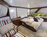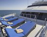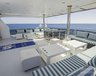 Hauptdeck mit modernem Essbereich, Lounge mit TV/DVD, Außenbereich mit Kameratisch. Weitere Lounge und Liegestühle auf dem Oberdeck. Überdachtes Sonnendeck mit einem Jacuzzi und Bar.