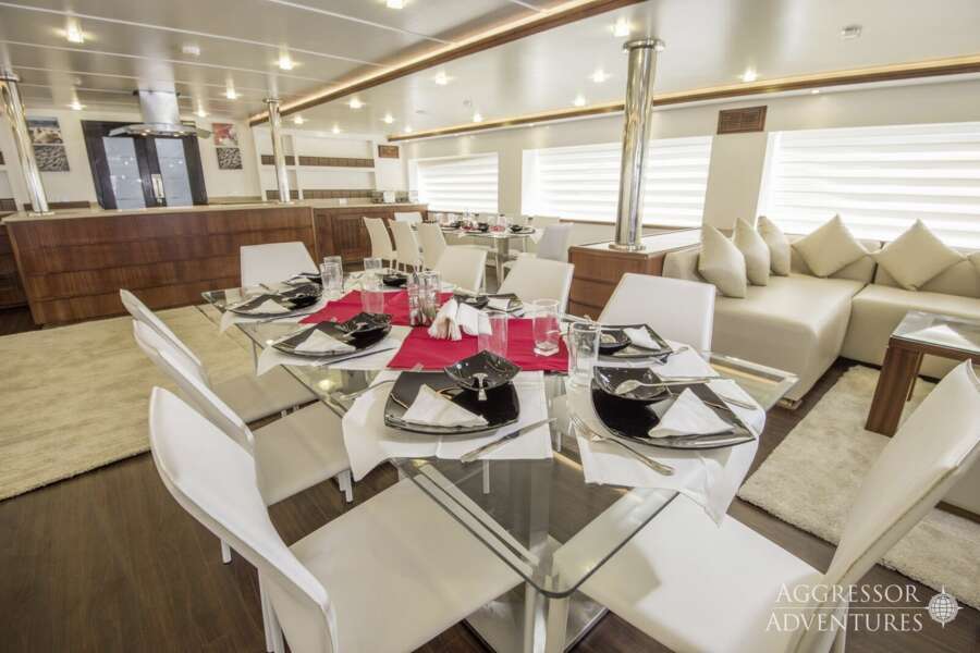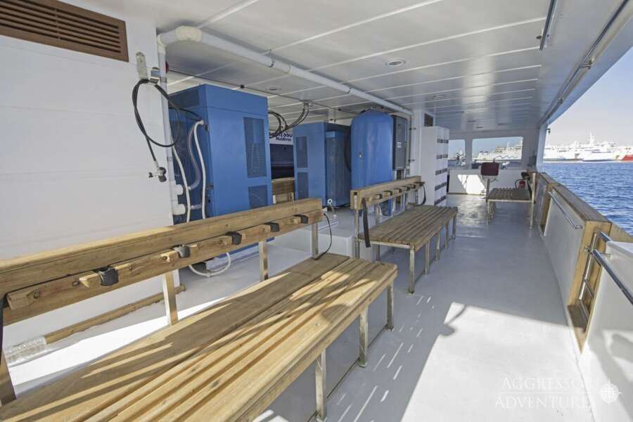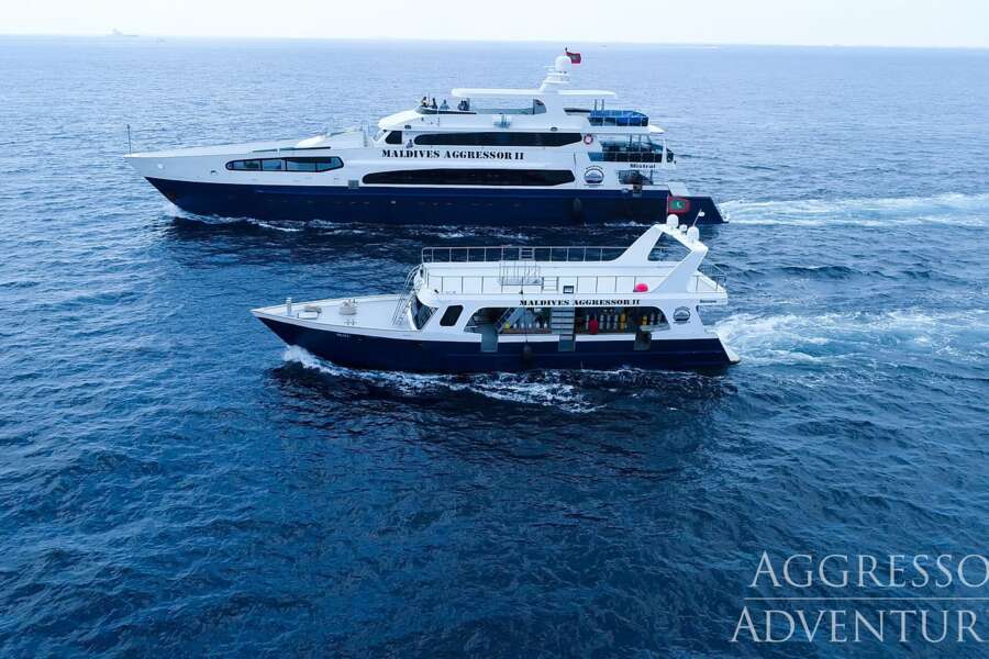 Seit 2009 bietet die bekannte Aggressor-Flotte Tauchkreuzfahrten in den Gewässern der Malediven an. Auf verschiedenen Touren können die Taucher mit der «Maldives Aggressor II» die besten Atolle des Inselstaats erkunden. Die Stahlyacht bietet Platz für 22 Taucher.