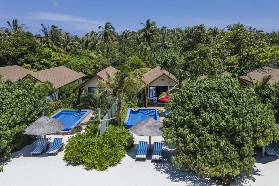 Die 25 Deluxe Beach Pool Villas (68 m²) liegen auf der Westseite direkt am Strand, sind gleich wie die Deluxe Beach Villas ausgestattet und verfügen zusätzlich über einen privaten Pool (28 m²). Des Weiteren verfügt das Resort über 2 2-bedroom Water Villa Suites mit Jacuzzi (226 m²) mit 2 Schlafzimmern, kombiniertem Wohn-/Essbereich und Jacuzzi auf der Terrasse.