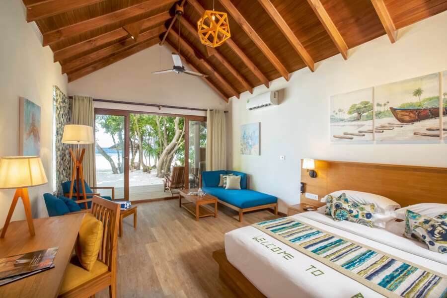 Die 43 Deluxe Beach Villas (64 m²) befinden sich direkt am Strand, sind geräumiger und einzelstehend und verfügen zusätzlich über eine Badewanne. Die 6 Deluxe 2-bedroom Beach Suites (147 m²) bestehen aus 2 Schlafzimmern verbunden mit einem Wohnzimmer und sind ideal für Familien.