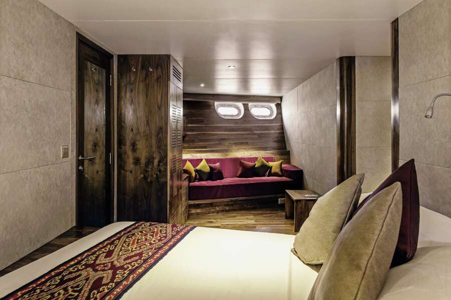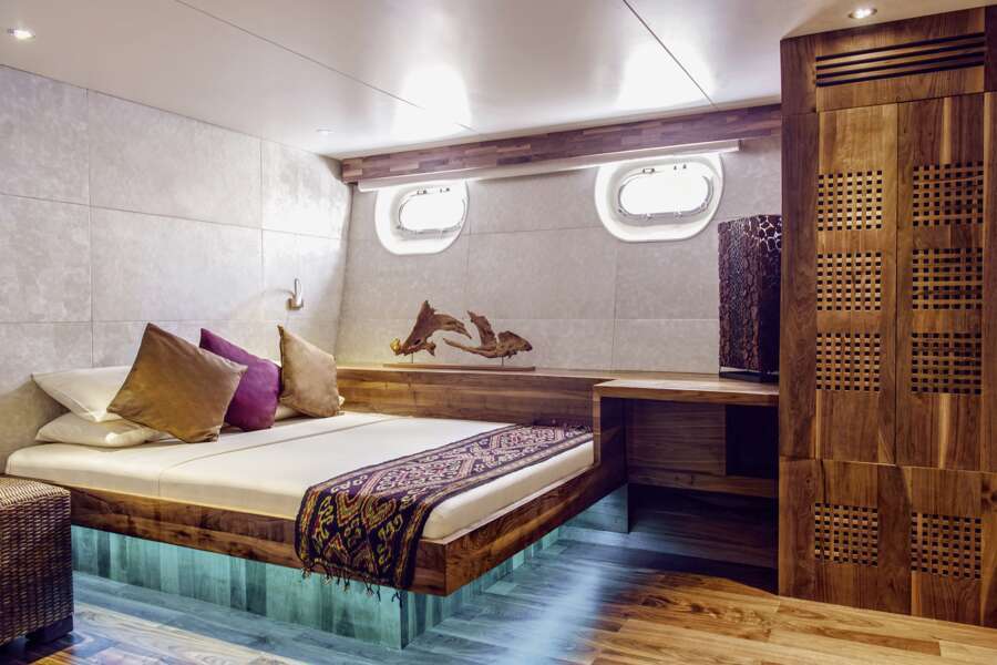 Die je 17 großzügigen Kabinen (13-22 m²) sind in vier Kategorien unterteilt und verfügen über Klimaanlage, Safe, Dusche/WC, Doppelbetten (nur Manta-Suite mit Möglichkeit 2 Einzelbetten), Stauraum.