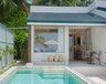 Die 28 Lagoon Villas mit Pool (78 m²) sind halb an Land, halb in die Lagune gebaut und sind mit einem Plunge Pool (6 m²) auf der Terrasse ausgestattet.
