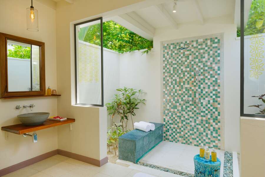 Alle 153 Unterkünfte wurden in modernem Design mit maledivischem Flair gebaut und verfügen über Klimaanlage, Deckenventilator, Minibar, Telefon, Safe, TV, Haartrockner sowie Tee-/Kaffeekocher, maledivisches Badezimmer und eine Terrasse.