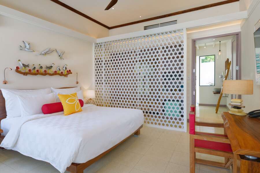 Die 38 Deluxe Beach Villas (57 m²) sind in Doppeleinheiten aufgeteilt und befinden sich auf der West- und der Ostseite der Insel.