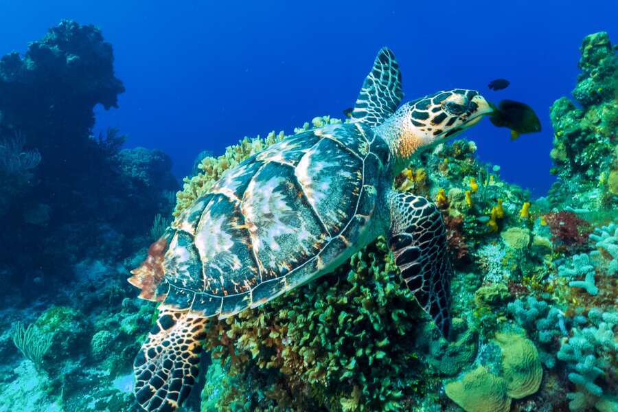 Schwämme, Fächerkorallen, Canyons und swim-throughs zieren die Unterwasserlandschaft entlang der Westküste Cozumels. Inmitten des tiefblauen karibischen Meeres sind die Tauchgänge, trotz des regen Tauchbetriebs, ein unvergessliches Erlebnis. Die bekannten Drop-offs dieser vorgelagerten Insel sind mit wunderschönen Weich- und Hartkorallen bewachsen, Schildkröten, Barrakudas, Adlerrochen werden nebst den unzähligen Rifffischen immer wieder gesichtet.