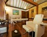 Die Wasserbungalows sind auf Stelzen gebaut, verfügen über eine Lounge mit Glasboden und über eine kleine Treppe einen Direktzugang in die Lagune. Wi-Fi gratis im ganzen Resort.