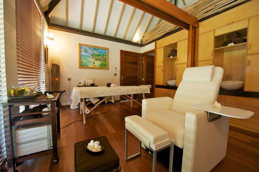 Die Unterkünfte im polynesischen Stil liegen verteilt in einem grünen Kokospalmen-Hain. Das Restaurant und die Bar befinden sich direkt am Meer und sind auf Stelzen gebaut. Der Infinity Pool, mit kleinem Jacuzzi, scheint mit dem türkisfarbenen Meer zu verschmelzen und lädt zum Relaxen ein. Ein Spa und ein kleiner Fitnessraum vervollständigen das Angebot.