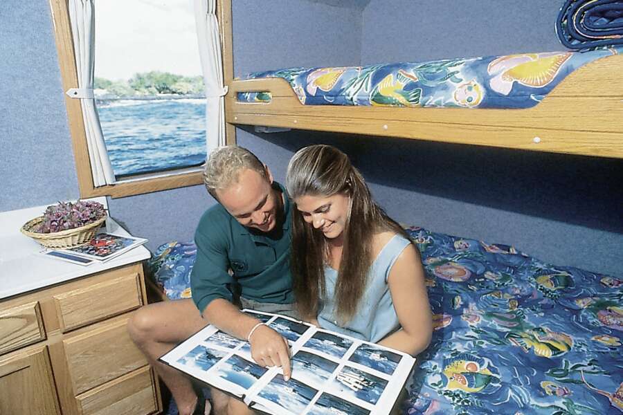 8 Deluxe- und 1 Doppelkabine mit je einem großen Doppelbett und einem darüberliegenden Einzelbett. Alle sind mit Klimaanlage, CD, Dusche/WC und Fenster ausgestattet. Die etwas kleinere Doppelkabine ist nur über das Tauchdeck zugänglich.