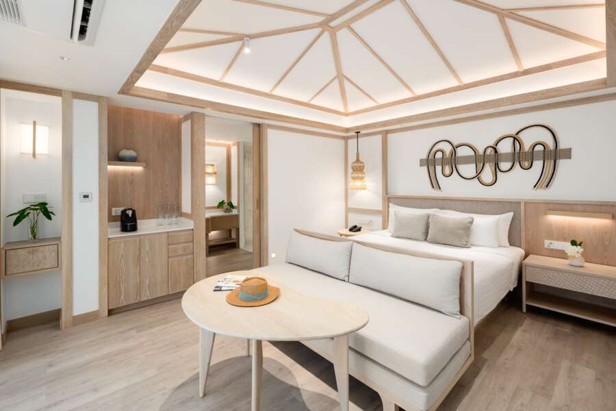 Deluxe Premium Bungalows (59 m²) und Deluxe Sea View Bungalows (59 m²) liegen in der zweiten Reihe zum Strand.